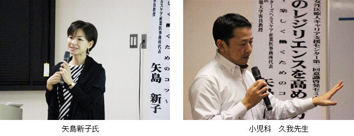 今回は、株式会社ドクターズヘルスケア産業医事務所代表で、医学博士・産業医の矢島新子先生をお招きして、「医療人のレジリエンスを高める方法~楽しく働くためのコツ~」と題しご講演いただきました。矢島先生は約20社もの多種多様な企業の産業医を勤め、休職・復帰管理の企画や人事コンサルティング、従業員の面談や研修、ストレスチェックなどをされています。そのご経験から、ストレスのメカニズムや、ネガティブな見方からポジティブな見方へ柔軟に見方を変える方法、自分の価値観を明らかにする大切さなどをお話いただきました。「レジリエンス」という聞きなれない言葉でしたが大変深い意味があり重要であることを感じました。